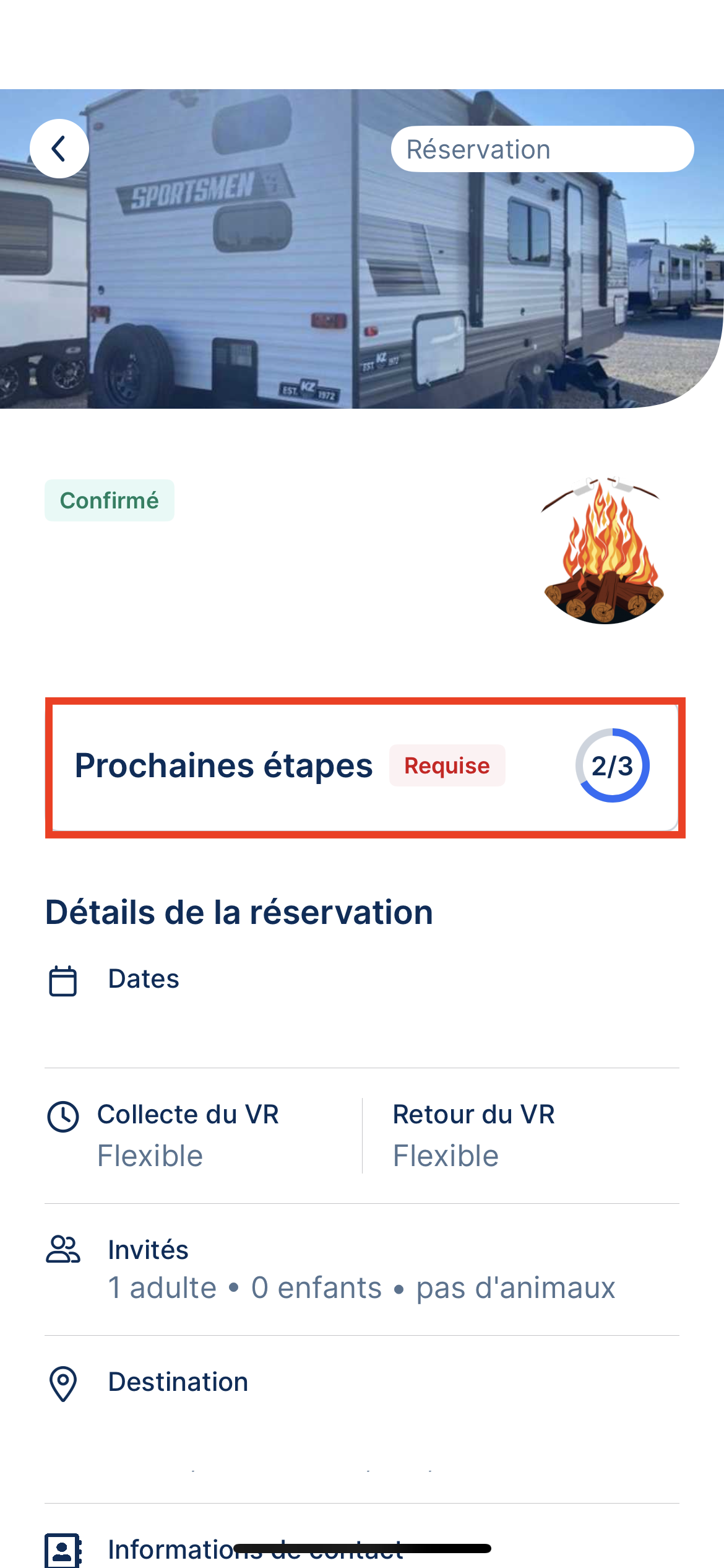 Cliquez sur la notification sur votre page d'accueil ou utiliser le bouton "Étapes suivantes" sur la page des détails de la réservation.